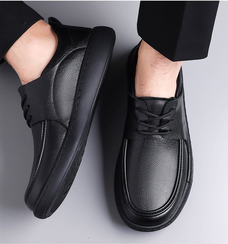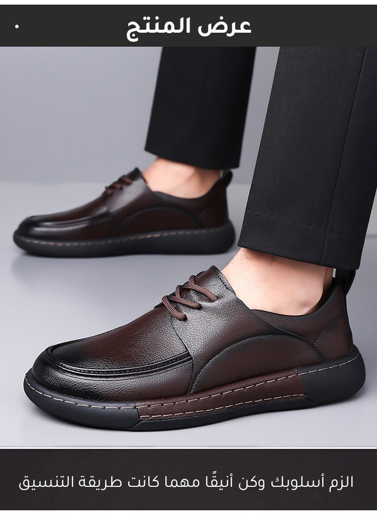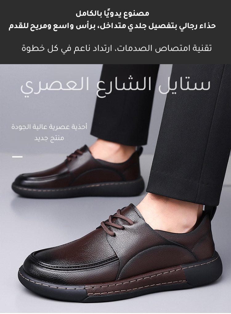 【مصنوع يدويًا بالكامل】حذاء رجالي بتصميم من الجلد المتداخل، برأس واسع ومريح للقدم