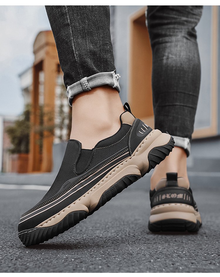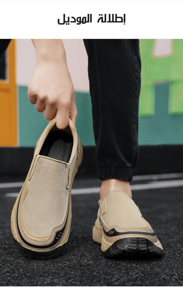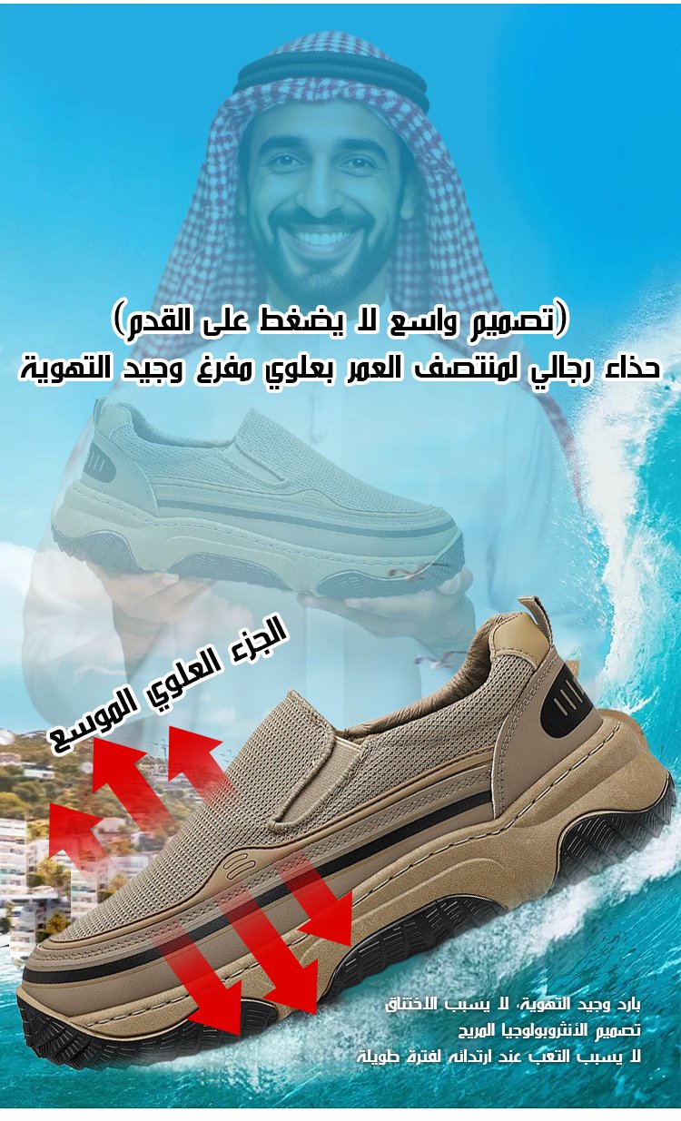 (تصميم واسع لا يضغط على القدم) حذاء رجالي لمنتصف العمر بعلوي مفرغ وجيد التهوية