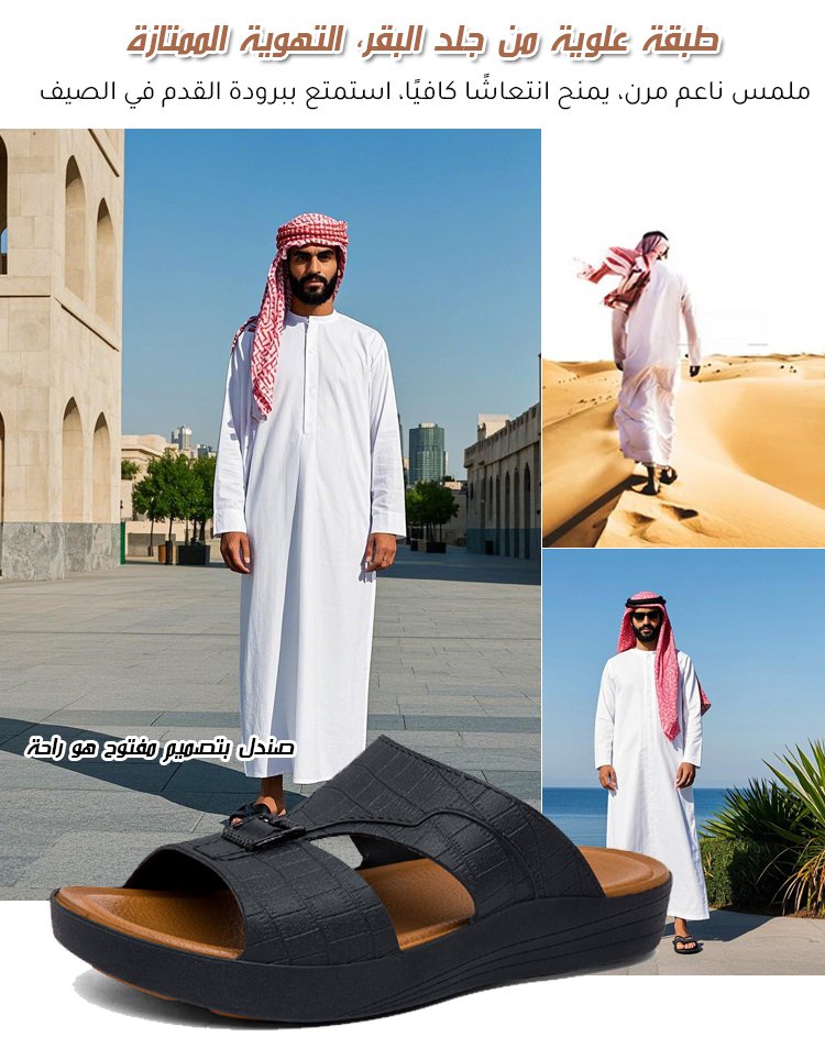 نعال جلد طبيعي تسمح بتهوية القدم ولا تلتصق بها، أكثر برودة 3 مرات من النعال العادية