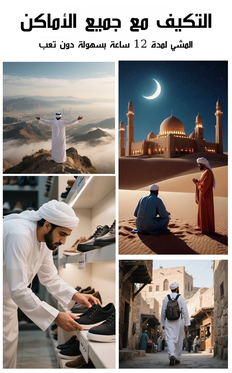 حذاء مصمم خصيصاً للرجال من الشرق الأوسط، بجيوب واسعة، فلا تتعب قدميك حتى مع المشي لثماني ساعات.