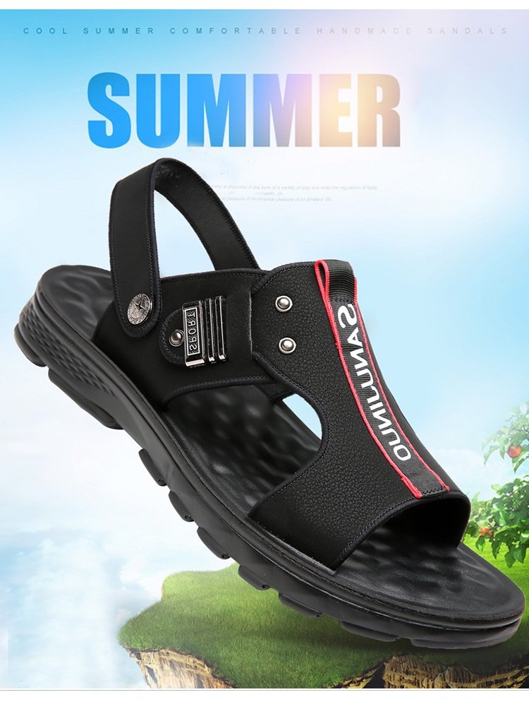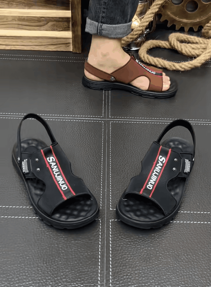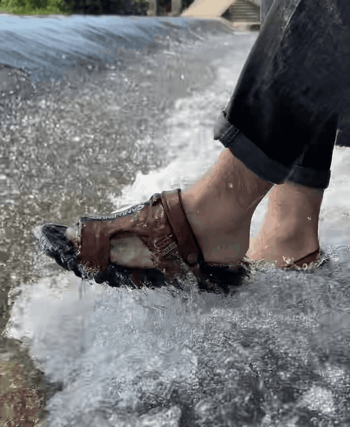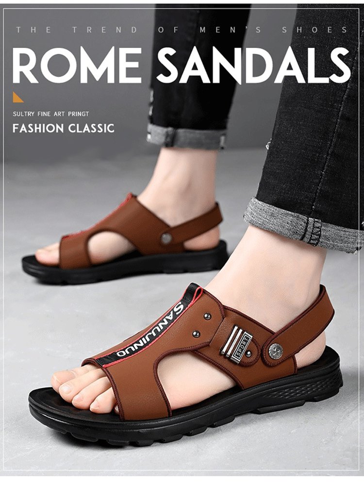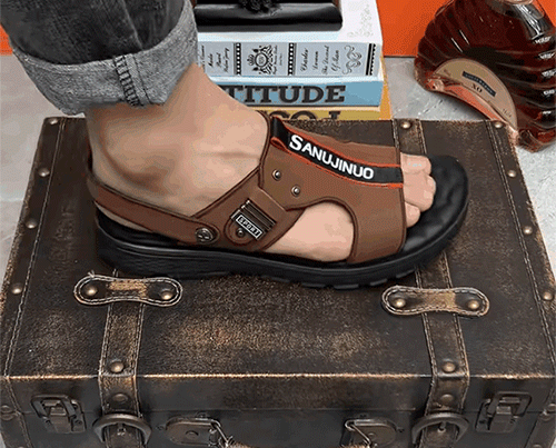 صندل شاطئ إيطالي رجالي من جلد بقر ذو نعل مقاوم للاهتراء والانزلاق