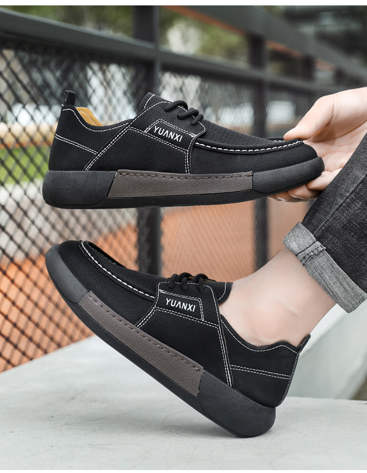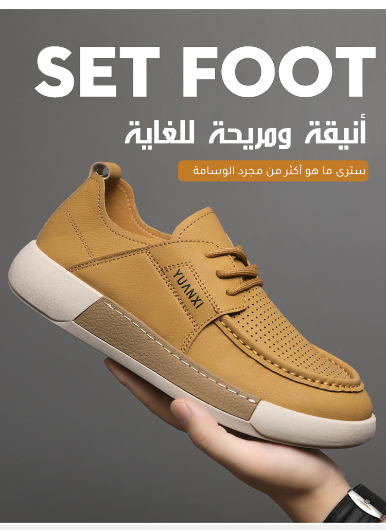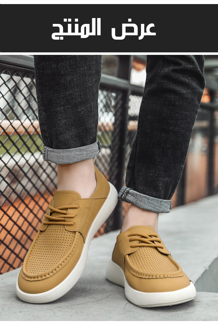 《تصميم ذو مقدمة عريضة》 حذاء رجالي جلدي كاجوال مفرّغ ذو تهوية ممتازة